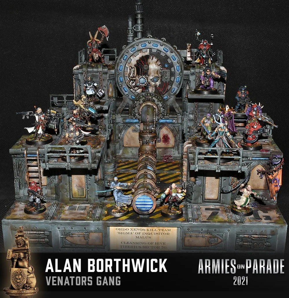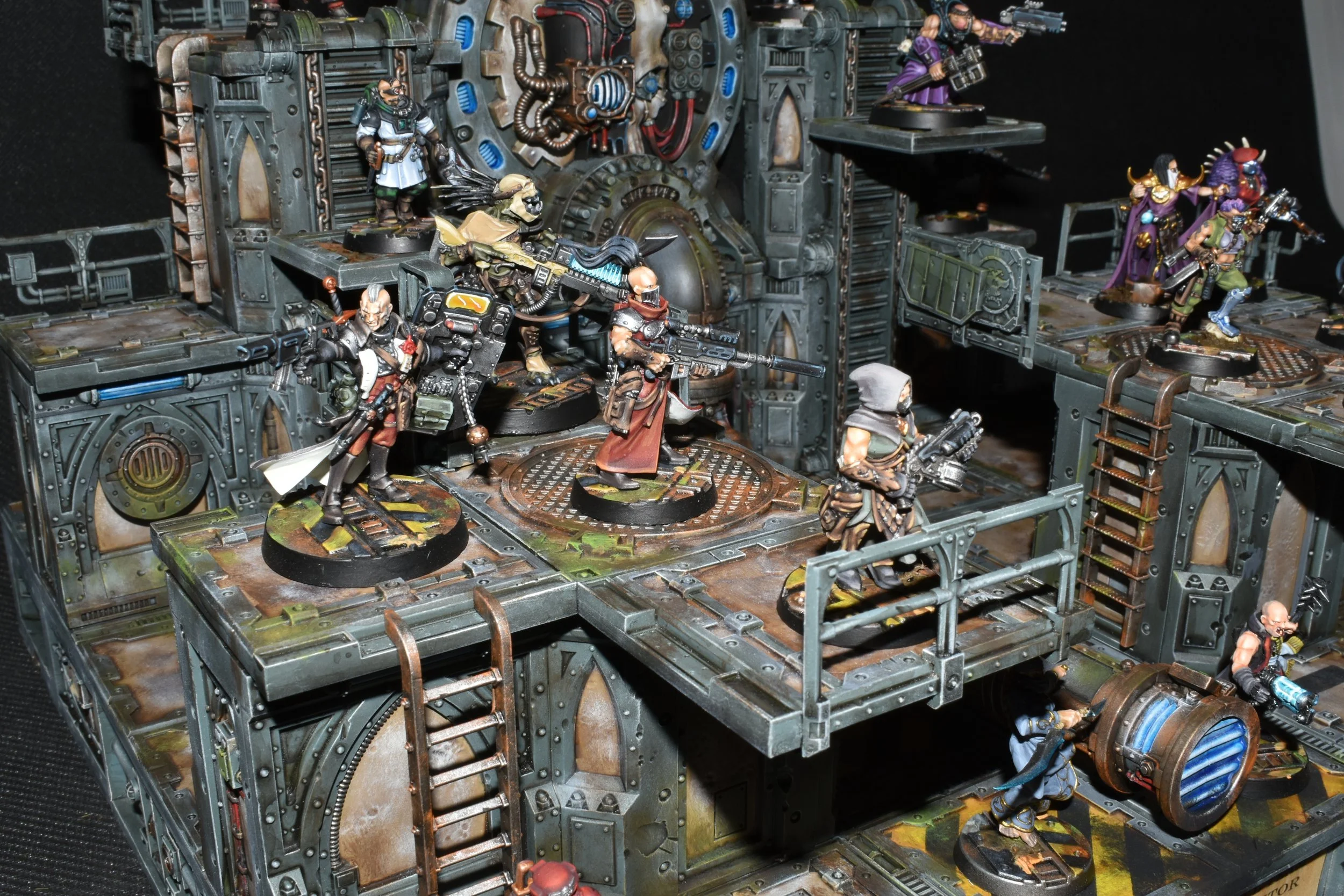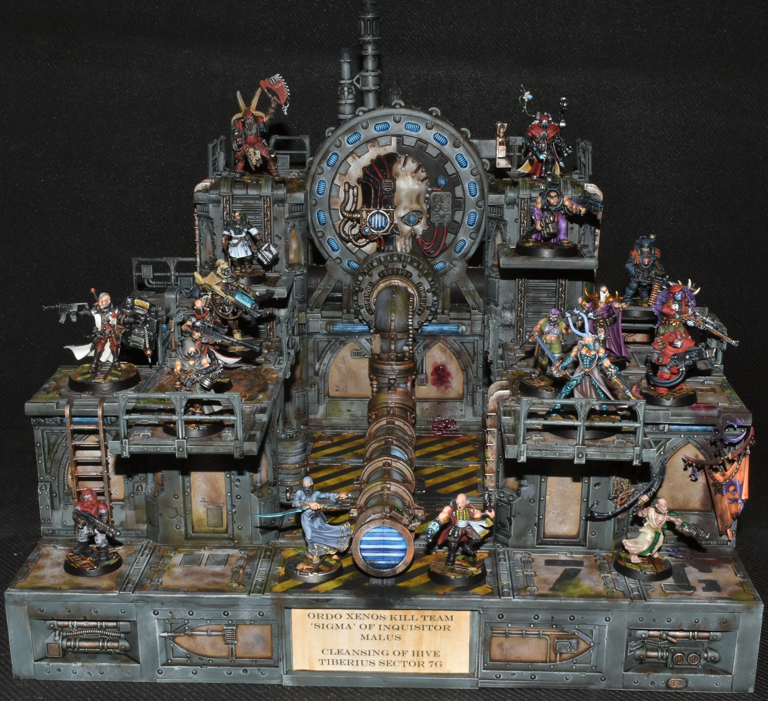 The theme for the army is an inquisitorial retinue of an Ordo Xenos inquisitor purging the underhive, following rumours of a Genestealer cult infestation. The scene would have them having cleared a sector of the hive, showing some subtle clues to the GSC being there.