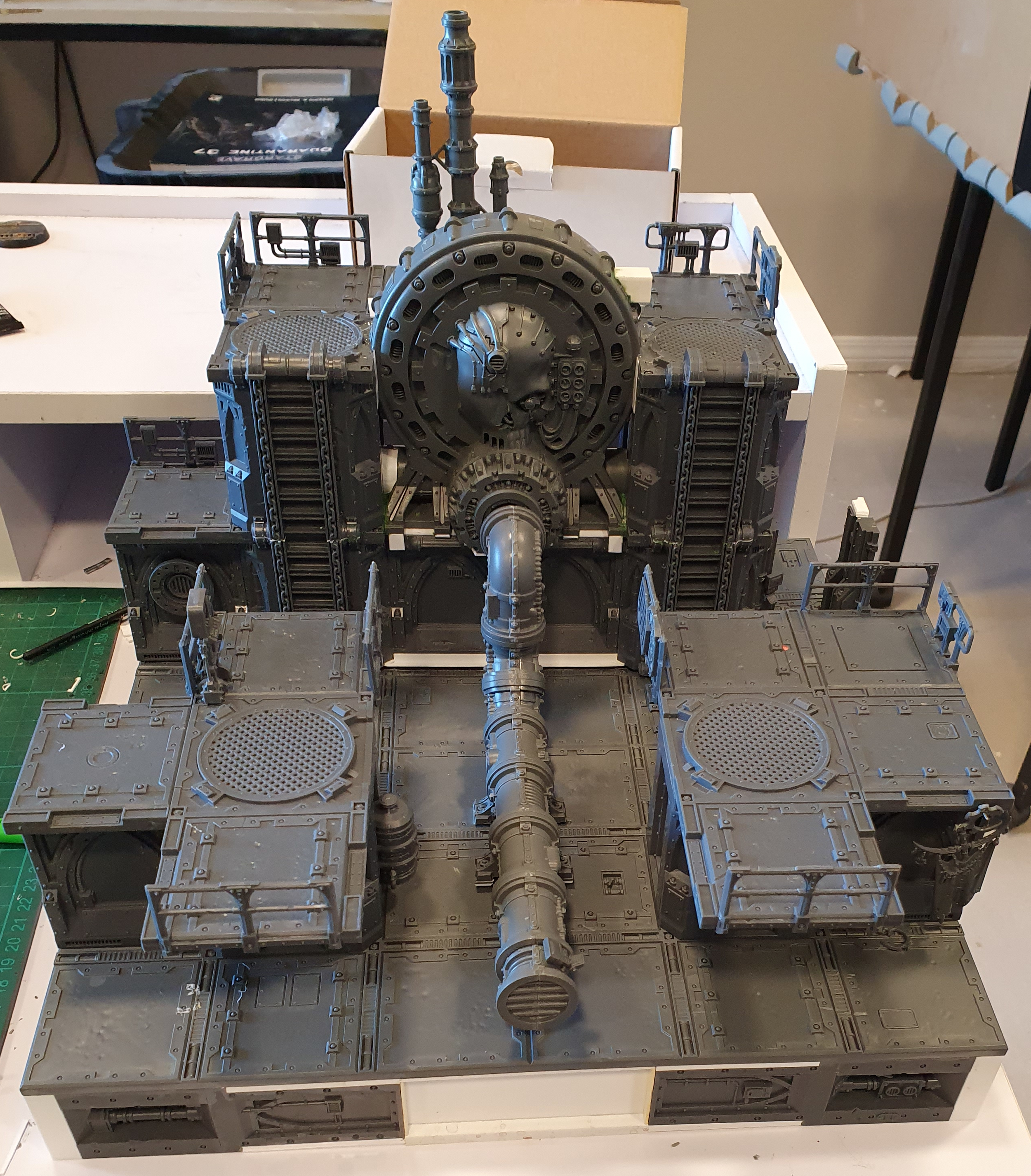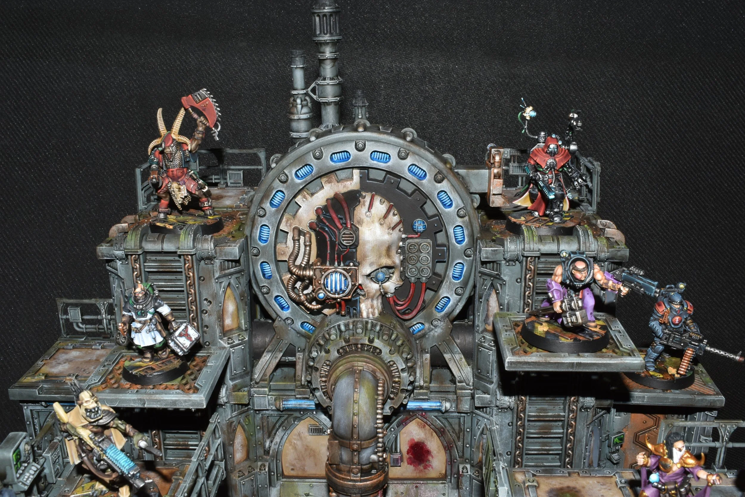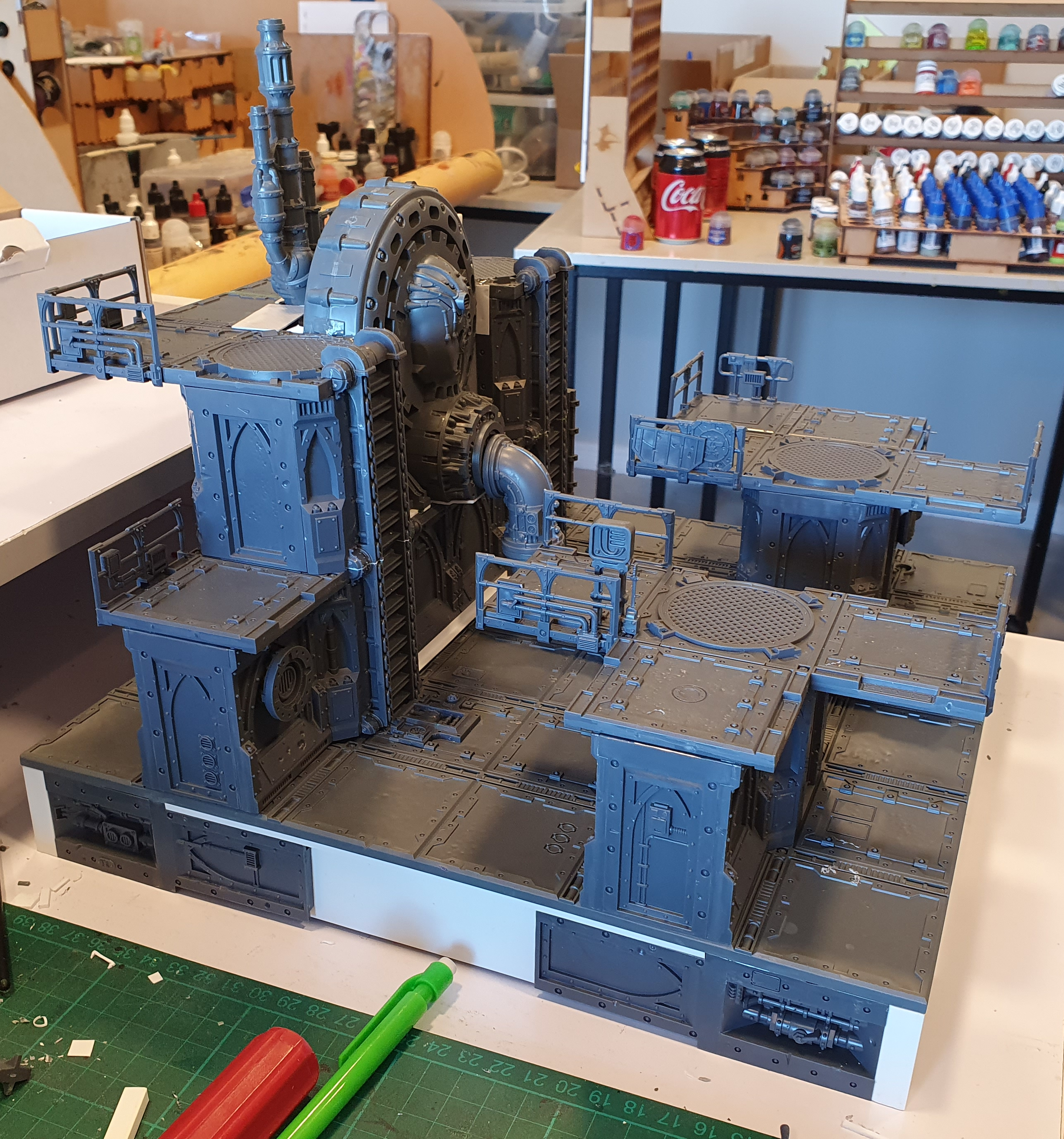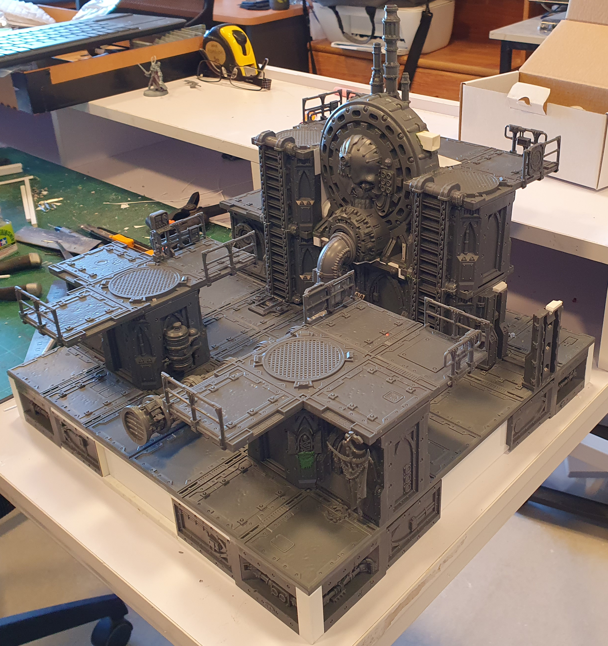 Assembly - the base is a GW necromunda tile , and i lifted it up with some of the other necro terrain and plasticard. i used a variety of kits and wedged in the Haemotrope reactor between the pillars (this was the most annoying part), a bunch of plastic card to make it all fit.
