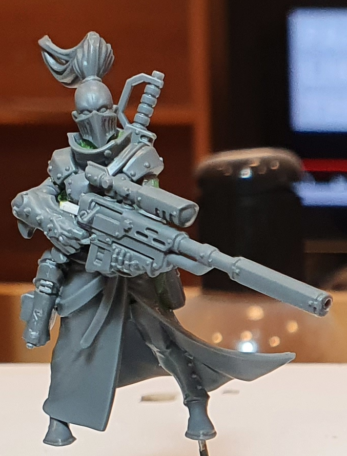 i gave her the enforcer sniper rifle and added it to some Escher arms, a sister of silence head and the chainsword from the female catachan.