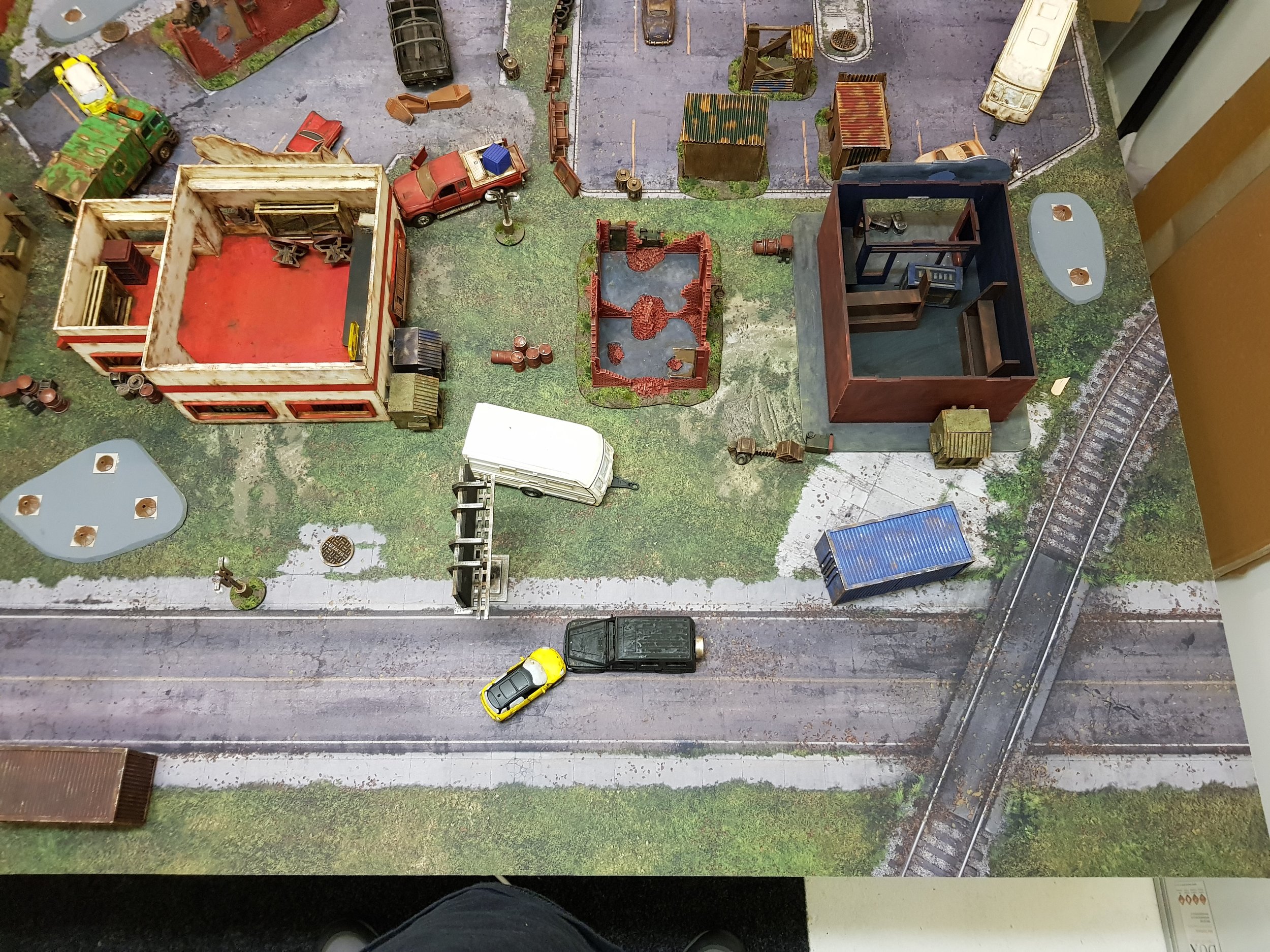 I was going to build a table up, but decided to go with a battlemat instead, and i used the Deepcut Studio Walking Dead Town one.