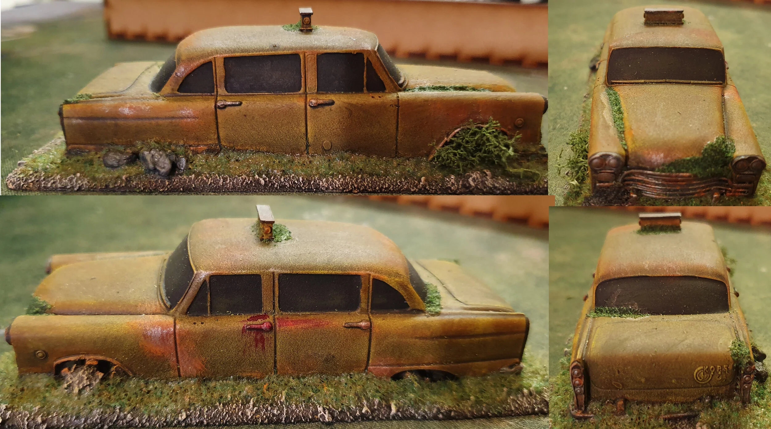 I got this car in the Kore Aeronautic KickStarter, but it was messed up, warped on one side etc (see review here ) . Now the are replacing it, but i had this one so decided to make terrain out of it. dirtied it up severely and i think it came out well.