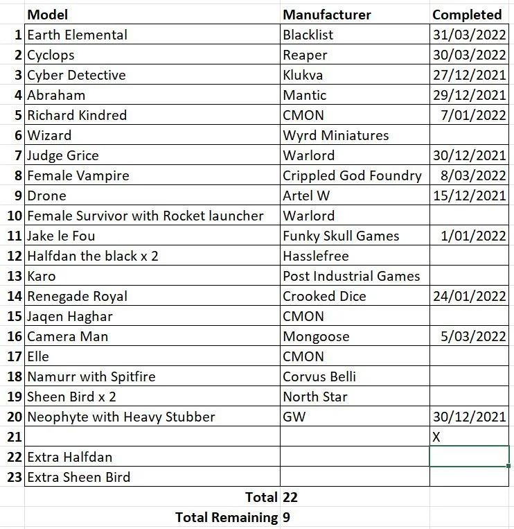 Its hard to keep track of the rules due to the way kickstarters work, but in general if i can avoid buying models in general to half of what i painted, and just try to minimise damage with kickstarters i will be fine.
