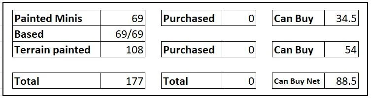 Making a good run for the year, 20+ models a month plus terrain. still having fun.