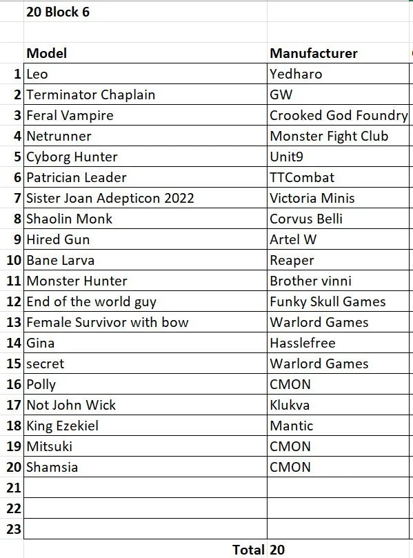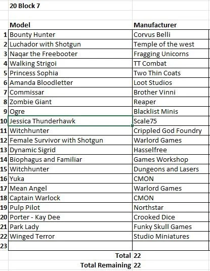 I’ve left some off, as I have very few models from them like the Giants in Miniature from Wargames illustrated, and various models from KickStarter board games, where its a one and done, and of course 3D printed models (when I get a printer). But they will come into a 20 Block as needed.