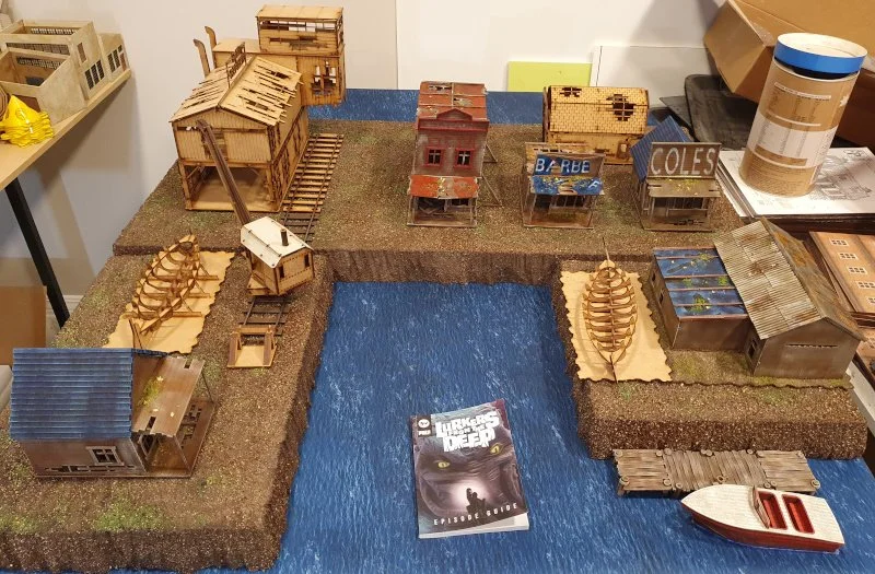 /Im getting ready for some games of 7TV by Crooked Dice on their Lurkers from the Deep Campaign. the Campaign has a series of games on various tables. So its a lot more terrain that i expected.
