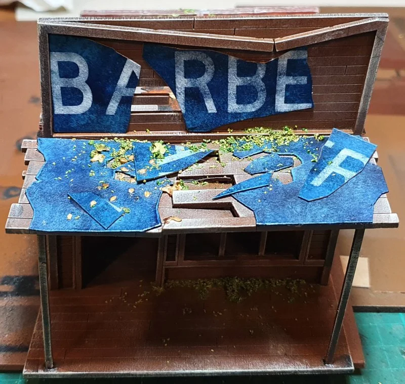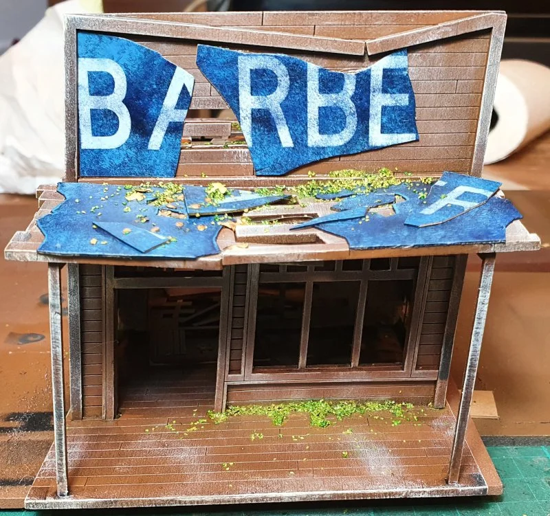 Another shop. Similar to the others, but this one had the stencil on card and then i cut it up and placed it on the wall and the roof.