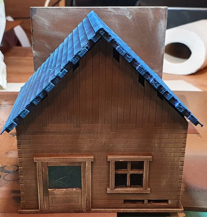 basic paint job of drybrushed wood and some scatter. I also made the windows on the doors a thing.