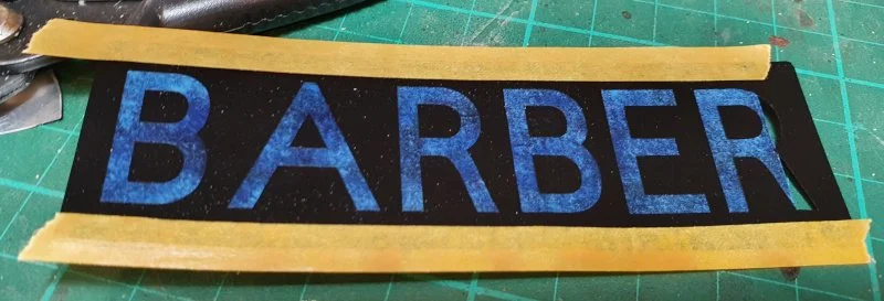 As some of the buildings were old shops i wanted to make signs for them. I used the Cricut again to make stencils in vinyl and covered the edges in masking tape. then i just stippled the paint into the gaps.